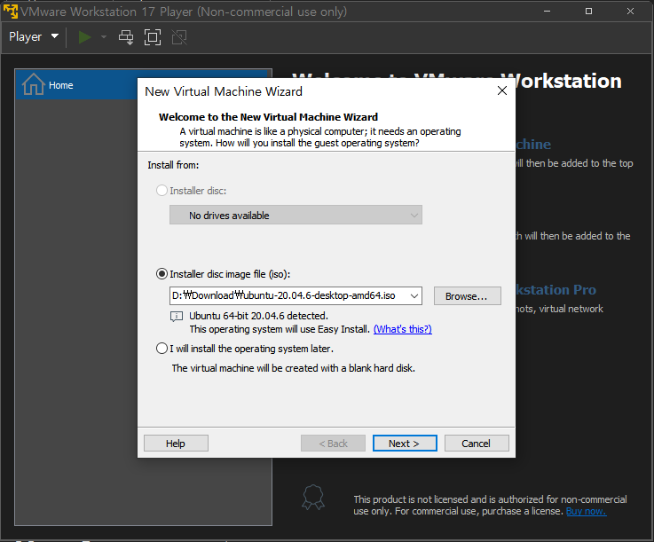 https://www.vmware.com/kr.html 로 들어가서 vmware workstation player로 들어가서 최신버전을 다운받는다.